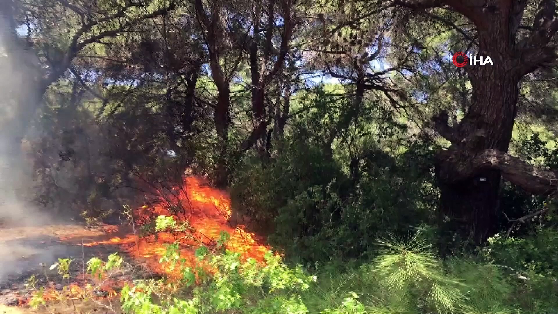 Antalya'nın aksu ilçesinde ormanlık alanda çıkan yangın kontrol altına alınmaya çalışılıyor.